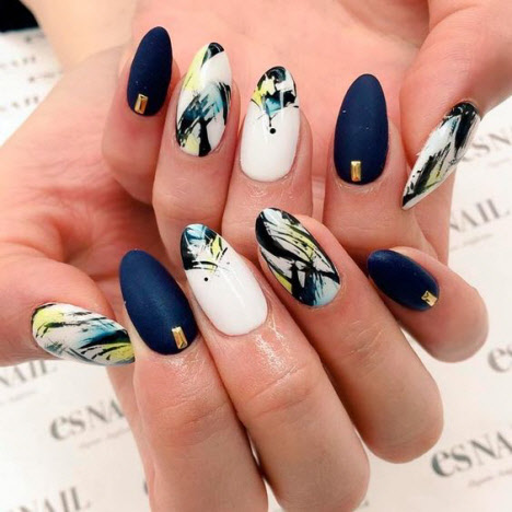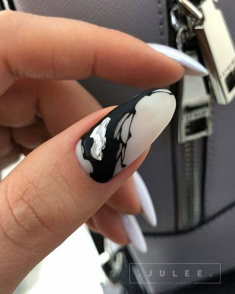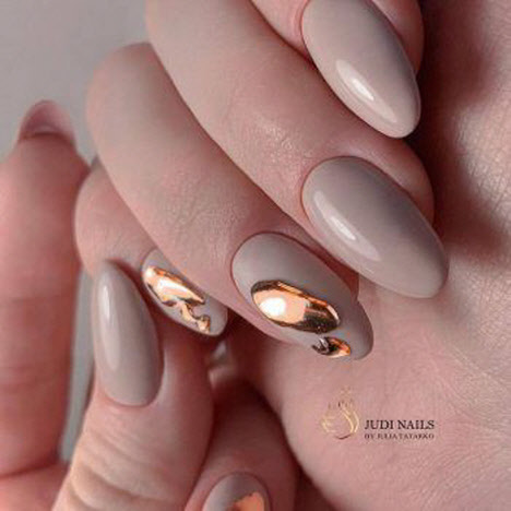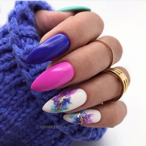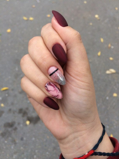 Heutzutage hat die Nageldesign-Branche eine große Vielfalt an verschiedenen Texturen, Mustern und Dekorationen. Die Maniküre in Mandelform ist ausgezeichnet und mit dunklen Farbtönen und gleichzeitig Licht finden Sie schöne Optionen sowohl in einer sanften ruhigen Leistung als auch in einer ausdrucksstarken Maniküre mit satten Farbtönen.
