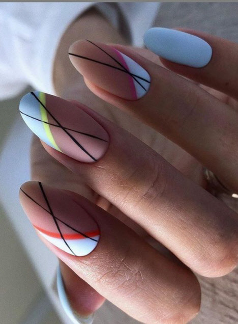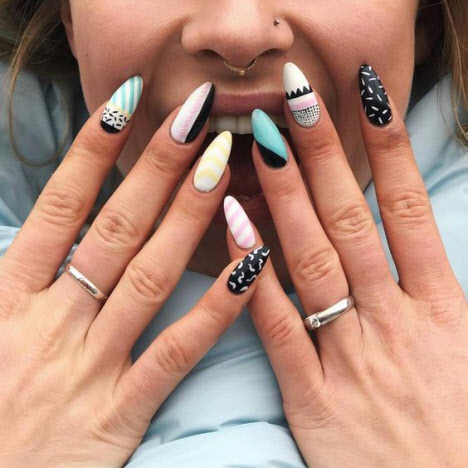 Geometriemaniküre für mandelförmige Nägel 2024