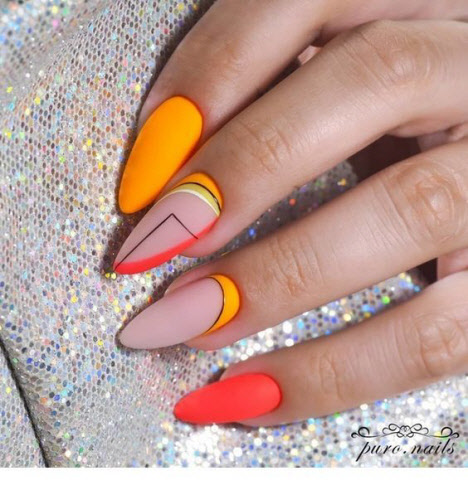 Die Meister der Nagelindustrie bieten uns einfach tolle Ideen für die Geometrie Maniküre, Saison 2024. Die Geometrie Stil Maniküre nimmt seit einigen Jahren einen besonderen Platz in der modernen Nailart ein und wird ihre Position auch in der kommenden Saison nicht verlieren. Mit ihren einfachen und gleichzeitig ungewöhnlichen Zeichnungen hat die Geometrie die Herzen vieler Mädchen erobert.