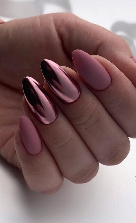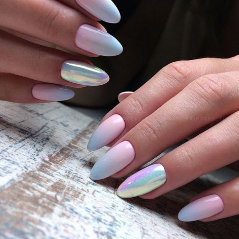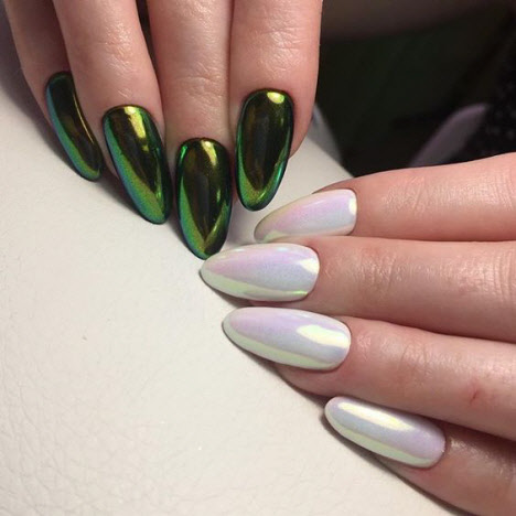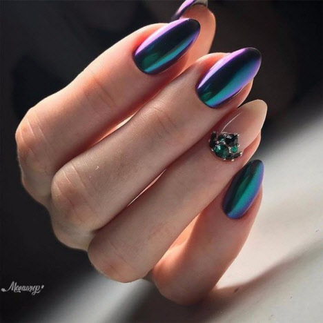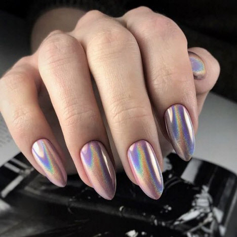 Die eingeriebene Maniküre wird 2024 im Trend liegen, sie sieht auf den Nägeln sehr beeindruckend aus. Rub für Nägel ist ein Pigment in Form eines speziellen Acrylpulvers. Es gibt verschiedene Arten von Nagellack: Chrom- oder Spiegellack, Perlglanz und holographischer Nagellack. Spiegeleffekt auf den Nägeln, bezaubernder und sehr zarter Perlglanz oder schillernde Tönungen - all dies kann mit einer Maniküre-Einreibung erreicht werden. Und auf langen Nägeln sieht das Reiben besonders beeindruckend aus.