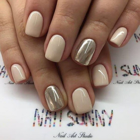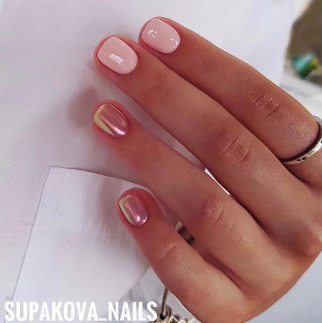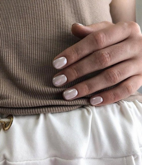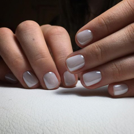 Selbst wenn Sie sehr kurze Nägel haben, kann eine Maniküre mit Einreiben diese wiederbeleben und sie optisch länger machen, als sie tatsächlich sind. Es ist am besten, eine einfarbige geriebene Maniküre durchzuführen, da sie an sich bereits hell ist.