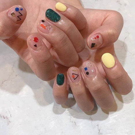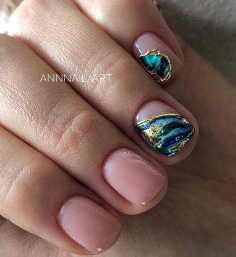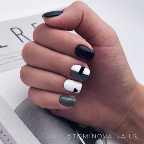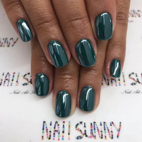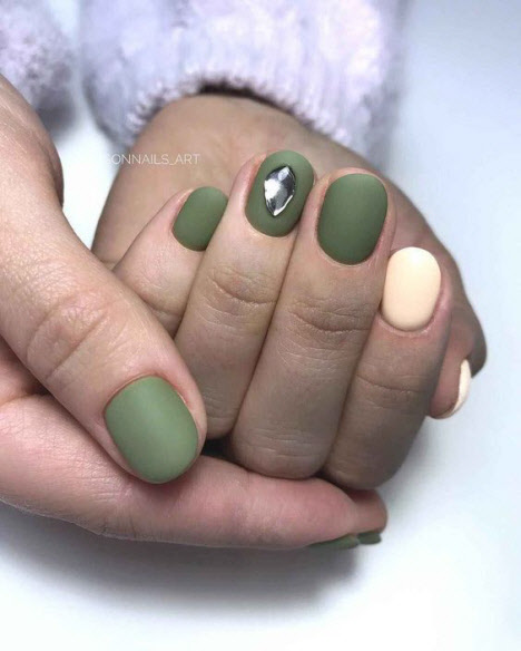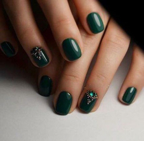 Grüne Farbe hat eine sehr reichhaltige Palette von Lacktönen und jeder von ihnen sieht fantastisch aus, so dass Sie sicher eine grüne Maniküre wählen und sie mit Kamifubuki, Rub, Kieselsteinen oder Glitzern kombinieren können.