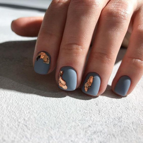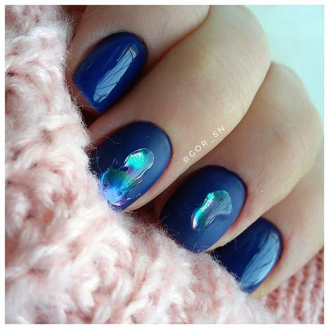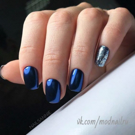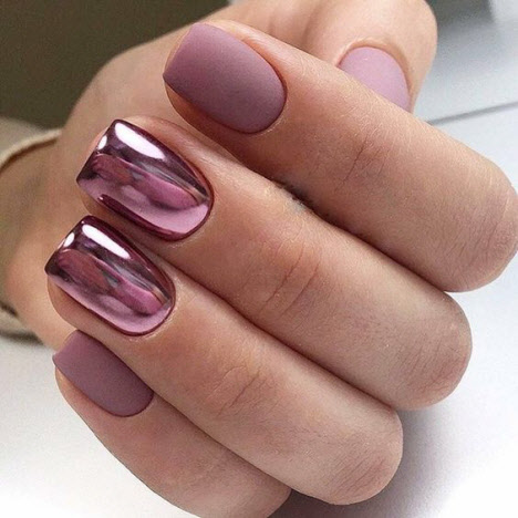 Die Flüssigmetall-Maniküre kann matt oder glänzend ausgeführt werden, in beiden Fällen sieht sie sehr beeindruckend aus. Es muss kein anderes Dekor verwendet werden, um die Maniküre nicht zu überlasten.