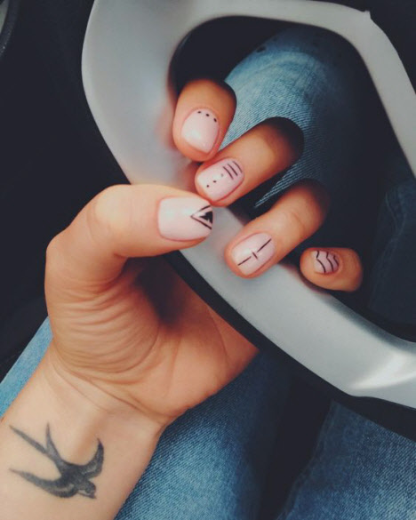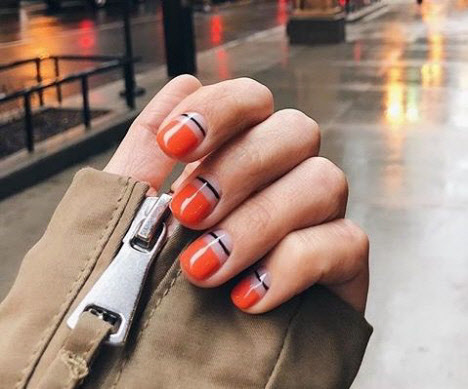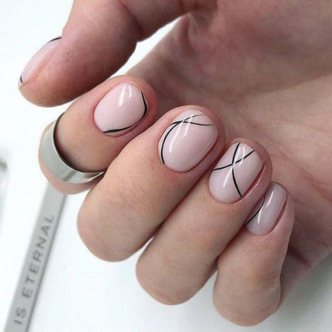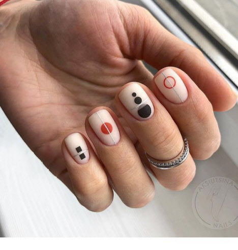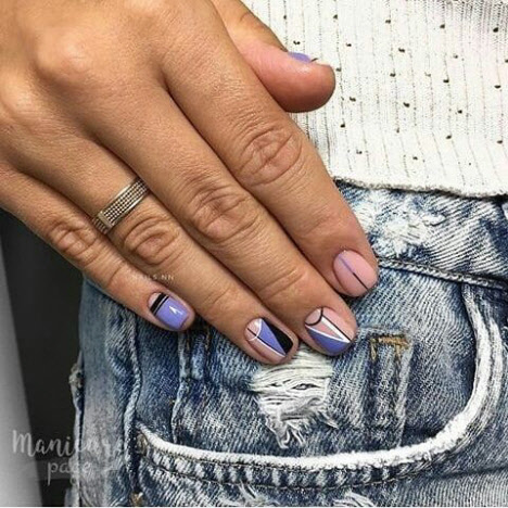 Auch die Geometrie-Maniküre in sehr kurzer Länge der Nägel liegt 2024 im Trend. Linien, Streifen, Locken und andere Abstraktionselemente helfen, den gewünschten Effekt bei dieser Art von Maniküre auf kurzen Nägeln zu erzielen. Es hängt alles von Ihrer Vorstellungskraft und der Professionalität Ihres Meisters ab.