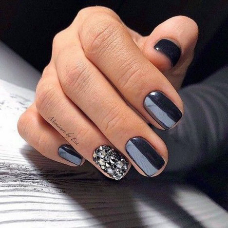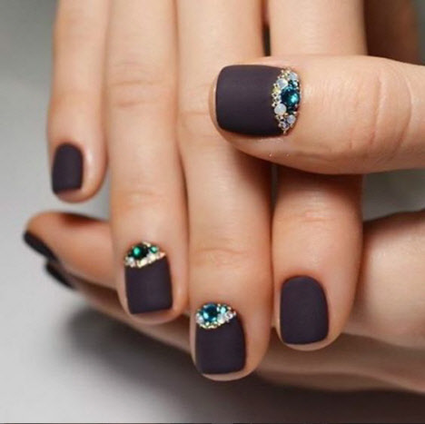 Dunkel gesättigte Farben sehen auf kurzen Nägeln sehr schön und beeindruckend aus. Das Oberteil wird Blau-, Schokoladen-, Grün-, Marsal- und natürlich Schwarz- und Rottöne enthalten.