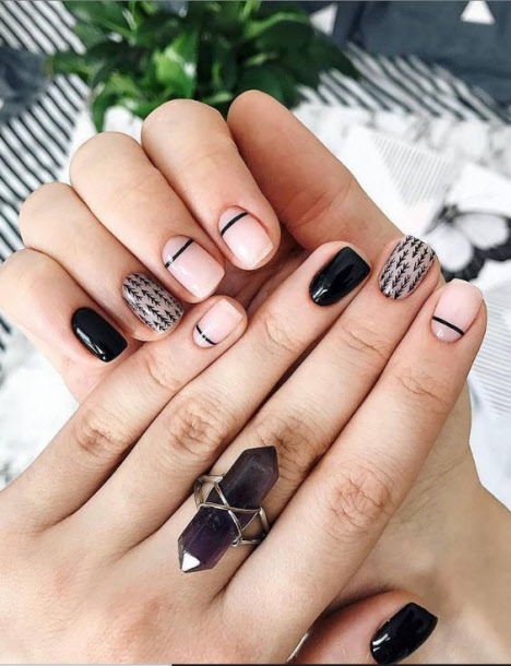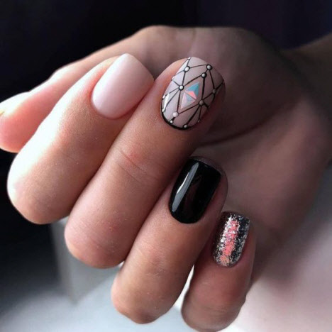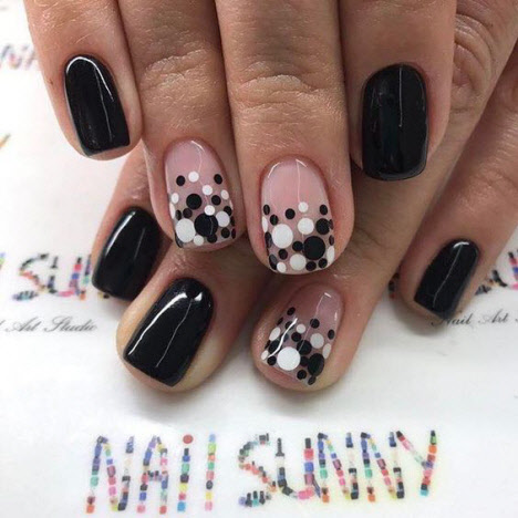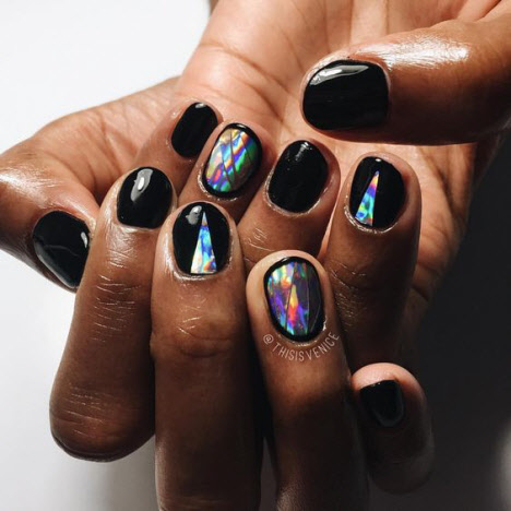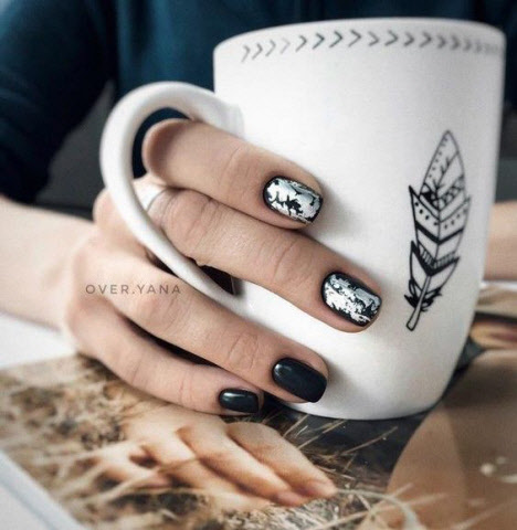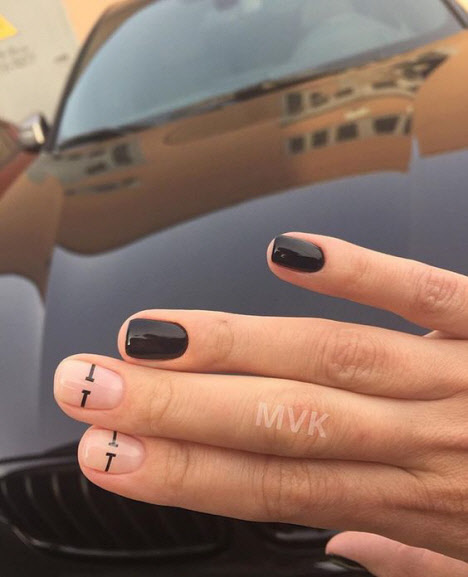 Schwarze Maniküre für kurze Nägel wird nur Ihr lakonisches Image betonen, denn diese Farbe hat einer Frau immer Ernst gemacht, aber nur, wenn die Nägel kurz sind. Und die schwarze Maniküre für lange Nägel erinnert eher an den Gothic-Stil.