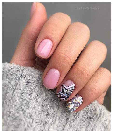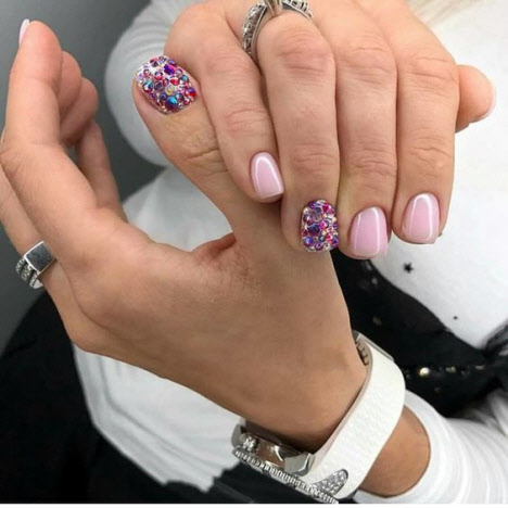 Maniküre für sehr kurze Nägel mit Funkeln und Steinen