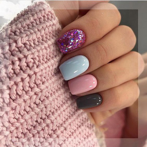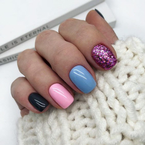 Bei der Maniküre sollten Sie sich an die Dreifarbenregel halten und nicht mehr als drei verschiedene Farbtöne in einer Maniküre kombinieren, denn in Maßen ist alles gut.