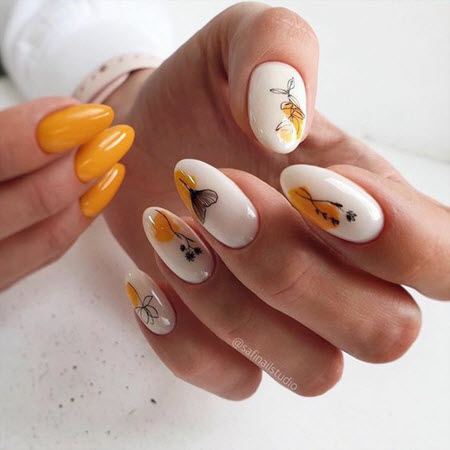 Mit einem solchen Design für ovale Nägel können Sie Ihrer Fantasie freien Lauf lassen und sowohl ein zartes als auch ein helles und farbenfrohes Design kreieren.