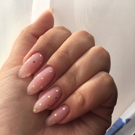 Es gibt viele Möglichkeiten für das Nageldesign mit Punkten, die modischsten und stilvollsten Ideen der Saison 2024 für ovale Nägel, sehen Sie sich das Foto an:
