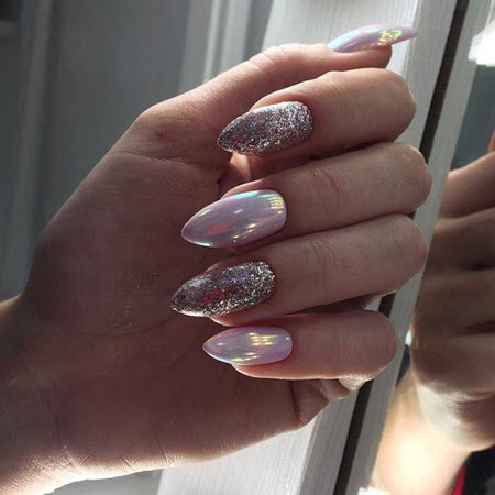 Glitzermaniküre auf ovalen Nägeln