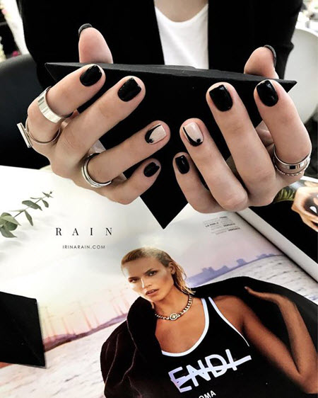 Die schwarze Maniküre ist ein Klassiker, der von Jahr zu Jahr nicht an Relevanz verliert. Schwarze Maniküre sieht auf ultrakurzen Nägeln und auf langen, unterschiedlichen Formen wunderschön aus. Schwarzer Lack passt zu allen Arten von Nageldesigns und wird 2024 die Favoriten sein.