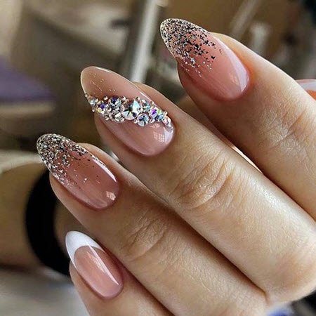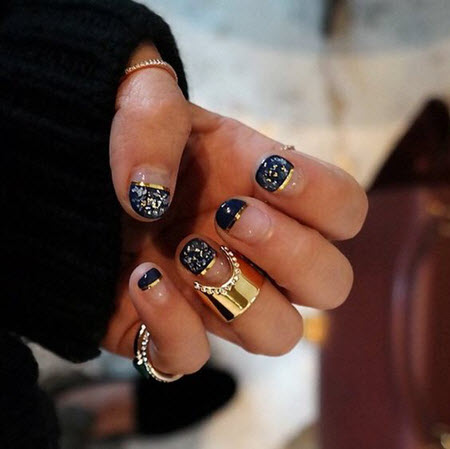 Glitzer ist die beliebteste Art von Nageldekor für mehr als eine Saison in Folge. Was die Trends der Herbstmaniküre mit Funkeln im Jahr 2024 betrifft, dann bevorzugen Sie silberne und goldene Funkeln, wählen Sie warme oder kalte Funken basierend auf der Hauptlackbeschichtung. Farbige Pailletten sehen auch in der Maniküre für kurze und lange Nägel gut aus, sie können mit dem Lack harmonieren oder kontrastieren.