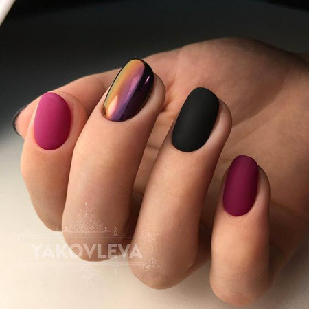 Die Beschichtung kann einfarbig oder mehrfarbig sein sowie durch kleine Muster, Muster, die Design- und Dekorelemente in Form von Kieselsteinen, Folienstreifen, Glitzern oder Kamifubuki nicht überladen, schön ergänzt werden. Die angesagtesten Ideen für die matte Maniküre 2024 finden Sie hier:
