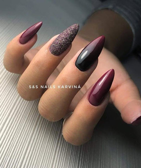 Die Herbstmaniküre 2024 kann mit einem schaumigen Nageldesign in den Top-Farben der Saison ergänzt werden: Burgund, Blau, Schwarz, Lila.