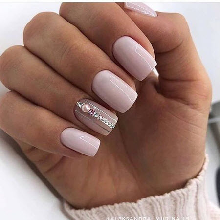 Nägel können mit stylischen Mustern in Form von Punkten, Streifen oder Bildern im Stil des Minimalismus ergänzt werden. Und auch im Jahr 2024 kann eine herbstliche Nude-Maniküre mit glänzenden Strichen, Folie, Perlen, Brühen oder kleinen Strasssteinen verziert werden.