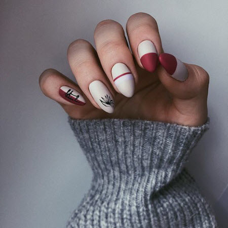 Zeichnungen können mit Acrylfarben, farbigen oder glänzenden Lacken mit einem dünnen Pinsel erstellt werden. Auch in der Maniküre sind heute Stempeltechniken und diverse Sticker gefragt. Beliebte Bilder für die Herbstsaison 2024 sind Blumenmuster, geometrische Richtungen, saisonale Bilder, Schriftzüge, Zeichentrickfiguren, zarte Locken, Streifen, Tupfen und viele andere interessante Vorschläge.