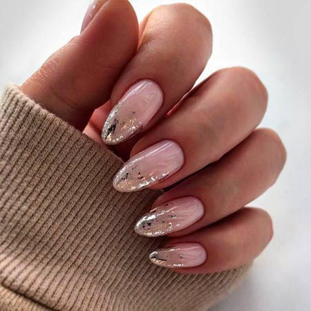 Die Folie haftet perfekt an den Nägeln, man kann damit verschiedene Muster machen und sie sieht stylisch und leuchtend aus, so dass viele Mädchen dieses Nageldesign lieben. Gold, Silber und mehrfarbige Folien liegen für die Herbstsaison 2024 in unterschiedlichen Techniken im Trend, sei es als einfarbige Beschichtung oder als kombiniertes Design. Im Herbst kann Folie in der Nude-basierten Maniküre verwendet werden und auf dunklen Tönen wird Ihnen das Ergebnis definitiv gefallen.