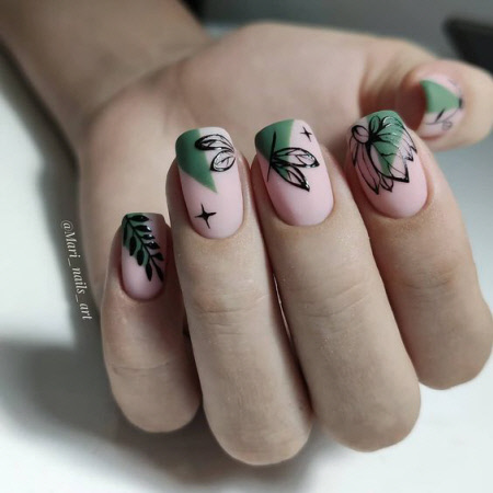 Ausgefallene Maniküre mit unterschiedlichen Designs an beiden Händen wird 2024 zum stylischen Herbsttrend. Eine solche Maniküre wird Ihre Stifte definitiv nicht unbemerkt lassen. Mega modisch sieht die Maniküre aus, bei der eine monochromatische Beschichtung auf der einen Seite mit einem Muster auf der anderen kombiniert wird, während der Farbton einer monochromatischen Beschichtung im Muster dupliziert wird. Probieren Sie diese Art von Design in diesem Herbst unbedingt aus.