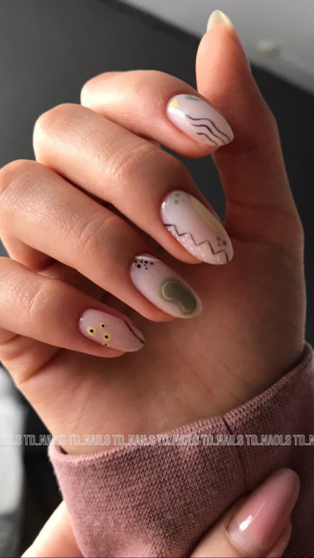 Abstraktion ist eines der beliebtesten Nageldesigns auf der ganzen Welt. Unkomplizierte Zeichnungen, Bilder und Striche in trendigen Trendfarben sind tolle Ideen für die Maniküre im Herbst 2024: