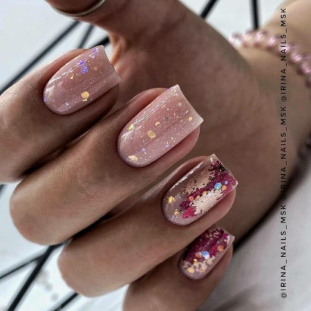 Im Herbst können schlichte lässige Glitzernageldesigns jeden Tag getragen und zu vielen Outfits gepaart werden. Pailletten betonen jede Maniküre, unabhängig von Muster und Muster. Sie können fast jedem Stil Glanz verleihen, z. B. in Kombination mit Muster, Folie, Steinen, Abstraktion und Minimalismus.