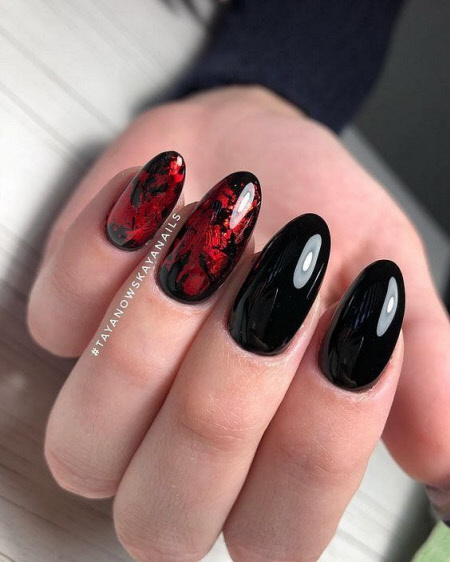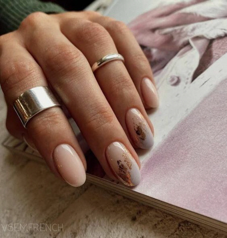 Für das Nageldesign im Herbst 2024 schlagen wir vor, modische dunkle und helle Lacktöne (Braun, Burgunder, Schwarz, Grün und die gesamte Nude-Palette) mit Goldfolie zu kombinieren, die vor allem die Herbststimmung des goldenen Herbstes vermittelt.