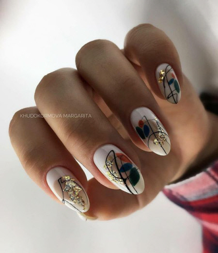 Geometriemaniküre für kurze und lange Nägel: Foto 2024