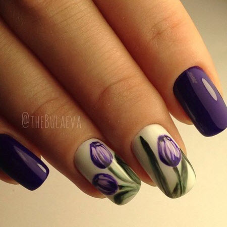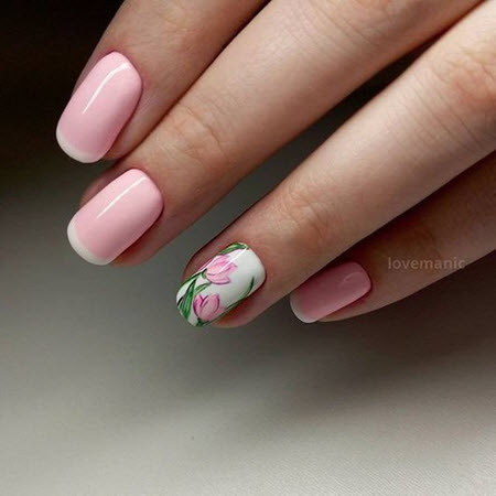 Tulpenmaniküre wird am häufigsten zu Beginn des Frühlings durchgeführt. Dies sind ideale Blumen für das Nageldesign im Frühjahr 2024-2025. Auf einem Nagel können Sie eine oder mehrere Tulpen gleichzeitig zeichnen, alles hängt von Ihrer Idee und der Länge der Nägel ab.