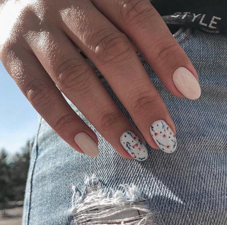 Winzige Blumen im Nageldesign haben seit mehreren Saisons ihre Relevanz nicht verloren. In den Jahren 2024-2025 kann eine Maniküre mit kleinen Blüten auf alle Nägel aufgetragen werden oder sich auf einen oder zwei konzentrieren.