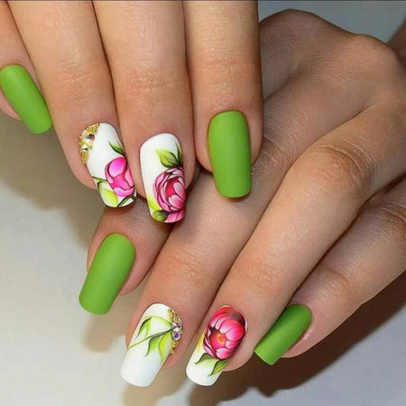 Wenn Sie florale Nageldesigns lieben, die mit der Mode Schritt halten, ist dieser Look eine gute Wahl:
