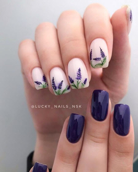 Lavendel ist die beliebteste Blume im Nageldesign für die Saison 2024-2025. Lavendel Maniküre sieht sehr stylisch und sanft zugleich aus, Pastellfarben ergänzen den Look perfekt.