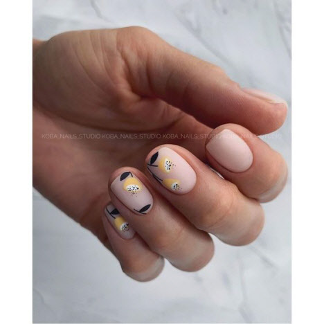 Fast jedes florale Design kann auf kurzen Nägeln ausgeführt werden. Im Jahr 2024 sind Nägel in weicher quadratischer Form und oval in Mode, und das Design kann sowohl in matt als auch in glänzend sehr unterschiedlich sein.