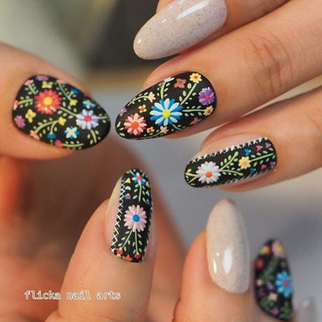 Blumen auf den Nägeln können in dieser Saison jeden modischen Bogen ergänzen. Eine Maniküre mit Blumen kann hell oder nackt, ruhig, glänzend und reich, spektakulär oder romantisch und feminin sein, alles hängt von Ihren Vorlieben ab.