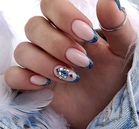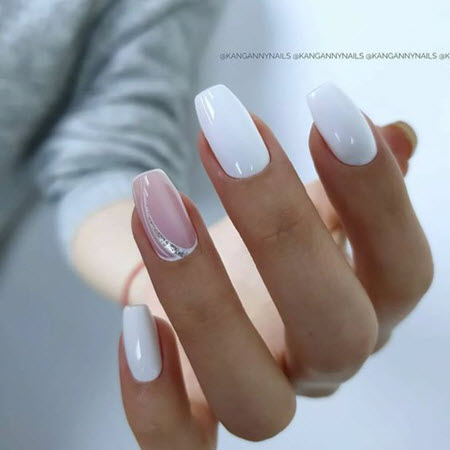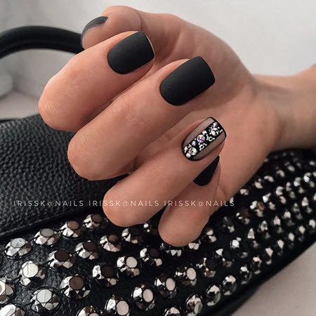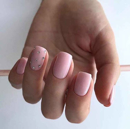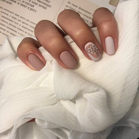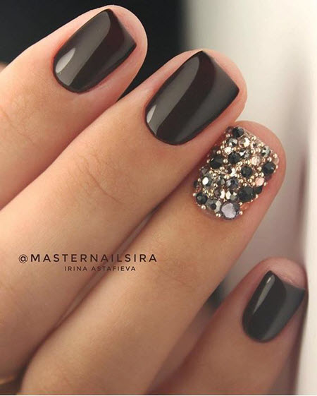 Steine und Strasssteine können selbst die gewöhnlichste monochromatische Maniküre in ein schickes Design verwandeln. Bei diesem Nageldesign ist es die Hauptsache, es nicht zu übertreiben, daher ist die Betonung eines Nagels genau der richtige Weg. Kieselsteine können verschiedene Farben und Größen haben, Sie können sie in einem schönen Muster auslegen oder nach dem Zufallsprinzip anordnen.