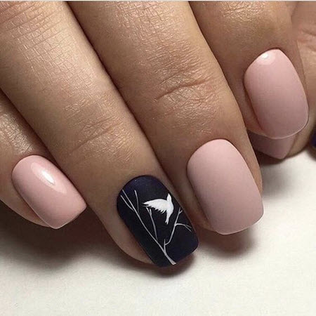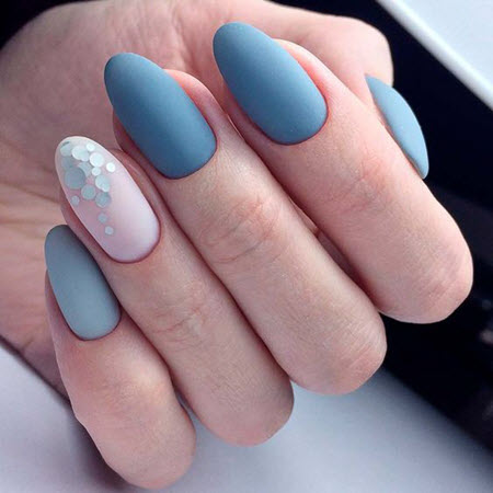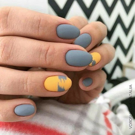 Mattes Nageldesign ist dem Glanz ebenbürtig, immer mehr Mädchen entscheiden sich für ein samtiges Finish, das auf Nägeln jeder Länge und Form sehr beeindruckend und stilvoll aussieht. Alle Arten von trendigen Nageldesigns werden mit einem matten Finish kombiniert, Sie können jedes Muster oder jede Dekoration wählen.