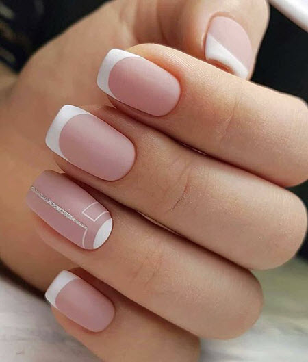 French Manicure ist ein Klassiker, der immer im Trend liegen wird, und das Zeichnen auf einem Nagel und die ungewöhnlichen Farben des Lochs tragen dazu bei, die Maniküre interessanter und modischer zu machen: