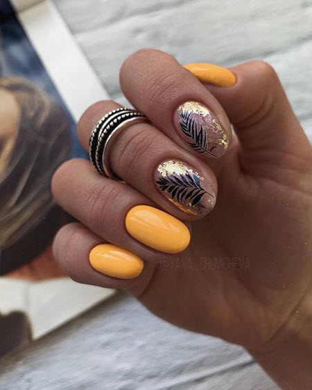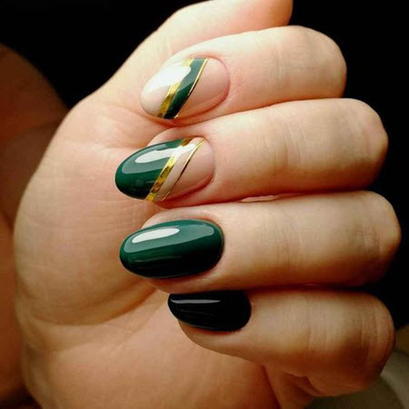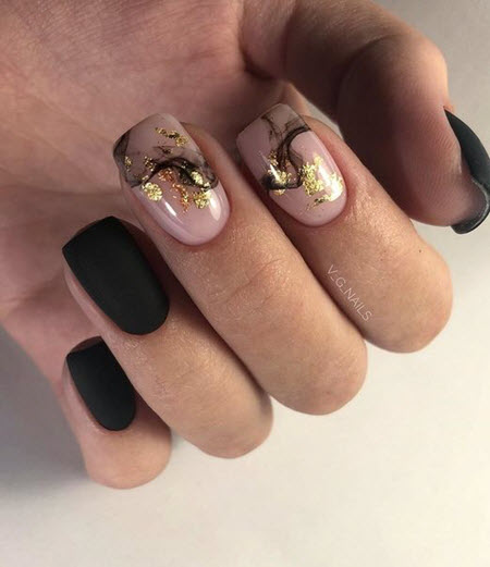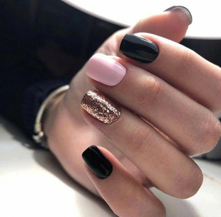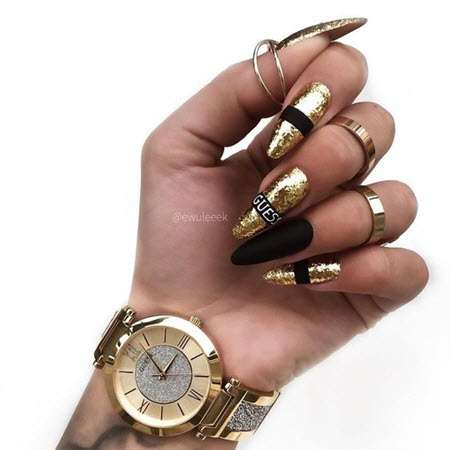 - Die Kombination von Gold mit schwarzer Farbe - diese Harmonie wird von Modemeistern nicht nur in der Kleidung, sondern auch im Maniküre-Design verwendet, eine solche Maniküre sieht toll aus.