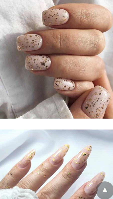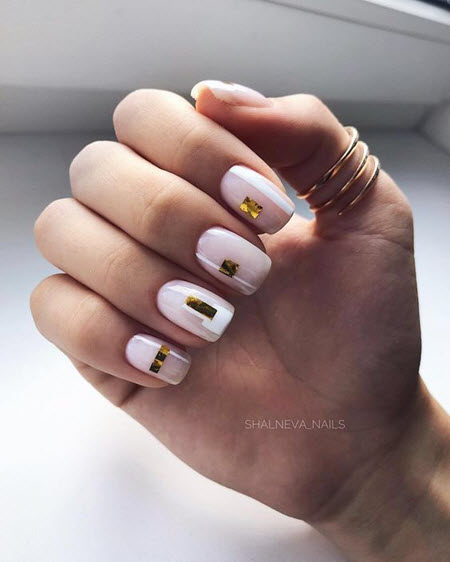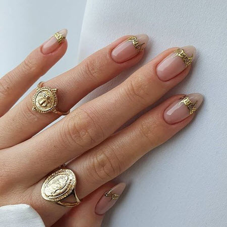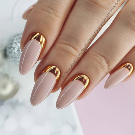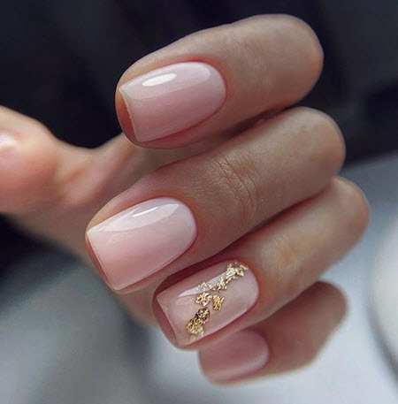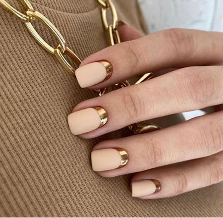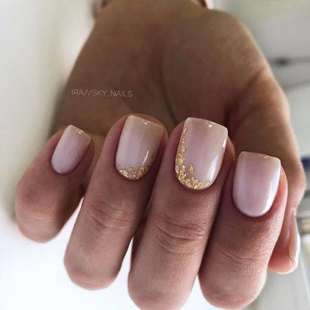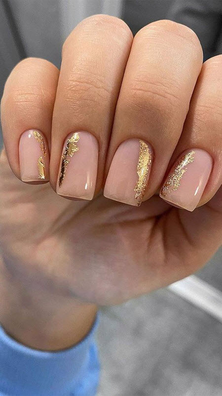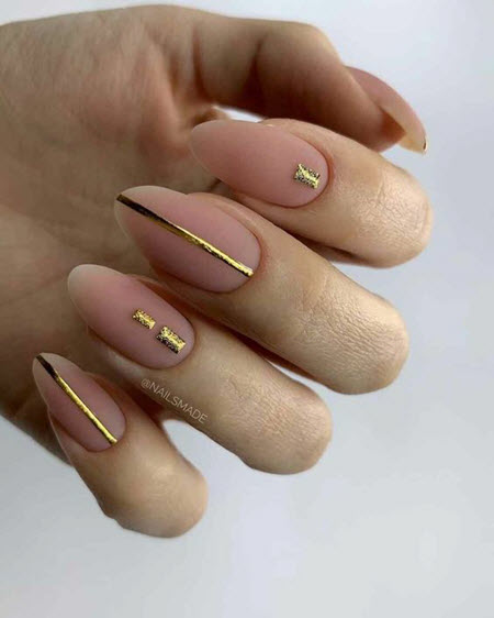 Nude sanfte Maniküre mit Gold 2024-2025