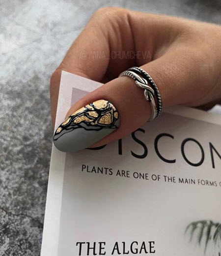 Dunkle Maniküre mit Gold