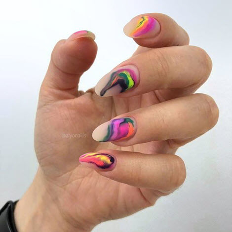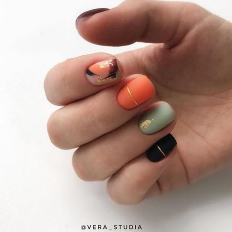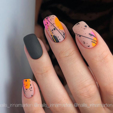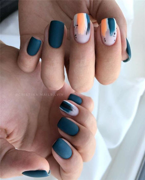 Ein Einhornriss sieht auf einem glänzenden Finish großartig aus, aber die ganze Schönheit einer Maniküre zeigt sich präzise auf einem matten Finish, egal in welchen Farbtönen, ob Pastell oder dunkel. Weitere Ideen und Details zur Maniküre-Technik finden Sie unter Dies Artikel.