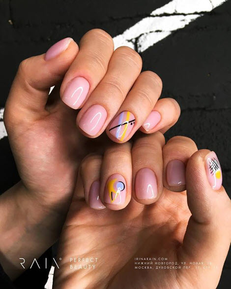 Wenn Sie ein Liebhaber von Minimalismus und Schlichtheit sind, dann wird Ihnen unsere Auswahl an Frühlingsmaniküre im Stil des Minimalismus bestimmt gefallen: schöne Farben, interessante abstrakte Designs auf sanften ruhigen Grundfarben des Jahres 2024. Minimalistische Maniküre sieht auf kurzen Nägeln am besten aus.