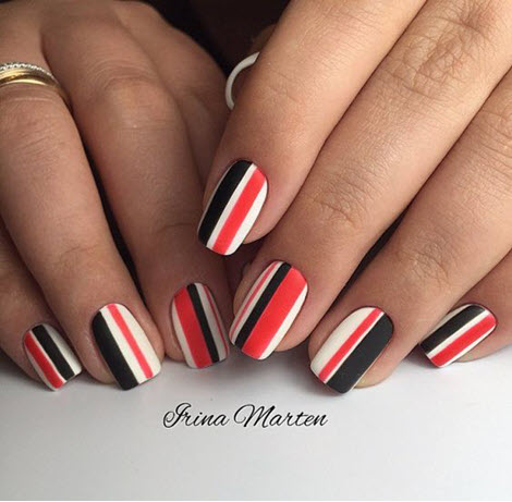 Streifen jeglicher Art sehen raffiniert und interessant aus, es gibt viele Möglichkeiten für eine solche Maniküre, siehe die besten Ideen des Jahres 2024 auf dem Foto: