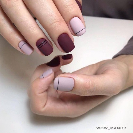 Minimalismus ist Ordentlichkeit und Einfachheit, minimalistische Designs auf einer matten Basis sehen sehr schön und stilvoll aus, insbesondere auf kurzen Nägeln. Eine minimalistische Maniküre beinhaltet ein Minimum an Details und Dekor, das Design sollte raffiniert und lakonisch sein.