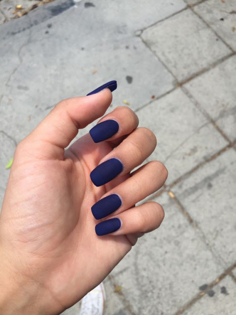 Im Zeitraum 2024-2025 eignen sich folgende Farben für eine matte Maniküre für kurze Nägel: Lila, Dunkelgrün, Schokolade, Blau, Schwarz, Grau oder Burgund.