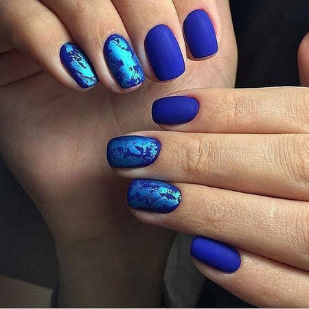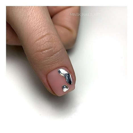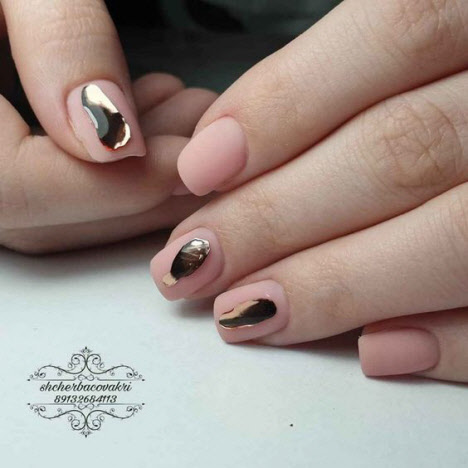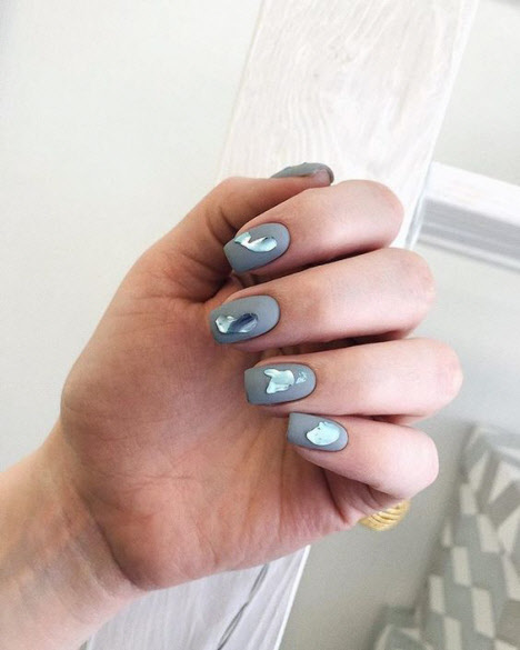 Maniküre "Unicorn Tear" oder wie es auch "Liquid Metal" genannt wird, sieht am besten in einem matten Finish und auf kurzen Nägeln aus.Die besten Ideen für eine matte Maniküre finden Sie in unserer Fotoauswahl: