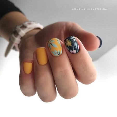 Helle, mehrfarbige Nägel können heute sicher Modetrends zugeschrieben werden, denn dank ihrer Fähigkeit, jede Garderobe einzigartig zu ergänzen, entscheiden sich viele Frauen zunehmend für solche Gestaltungsmöglichkeiten. Gesättigte Lacktöne müssen nicht kühn und trotzig aussehen, ein mattes Oberteil verleiht ihnen ein sehr schönes Aussehen.