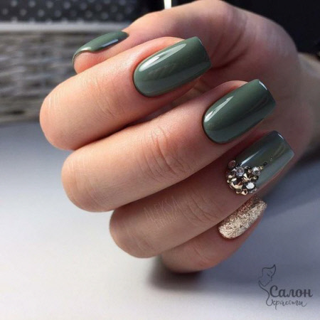 Eine satte, aber gleichzeitig ruhige grüne Farbe, die sich sowohl im Herbst als auch im Winter ideal für die Maniküre eignet, Sie müssen nur das richtige Design wählen. Suchen Sie in unserer Fotoauswahl nach schönen Möglichkeiten für das Nageldesign mit grünem Lack: