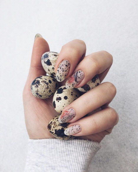 Modische Sprühfarbe oder Wachtelei-Maniküre-Ideen
