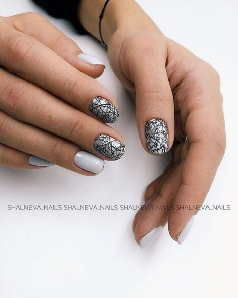 Abstrakte Maniküre sieht auf kurzen Nägeln am besten aus, aber viele Mädchen wählen abstrakte Maniküre für lange Nägel, vermeiden Sie einfach kleine Muster und Formen.