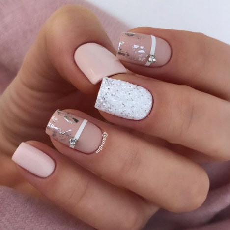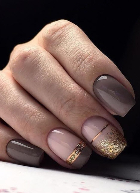 Nude Maniküre wird mit Glitzern, Steinen, Folie, Einreiben, Aufklebern und anderen Techniken kombiniert, sie ist sowohl in matt als auch glänzend wunderschön. Eine Nude-Maniküre mit Geometrie und Minimalismus wirkt besonders harmonisch und ermöglicht Ihnen ein interessantes und stilvolles Design.